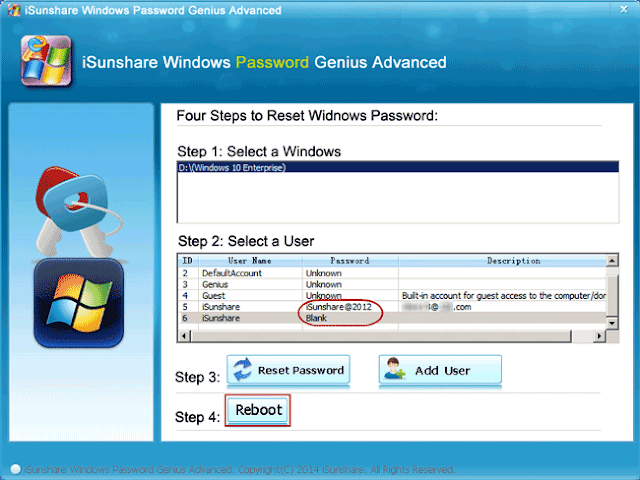 Way 2: Reset/Remove Windows 10 Forgotten Password with iSunshare Boot USB Drive